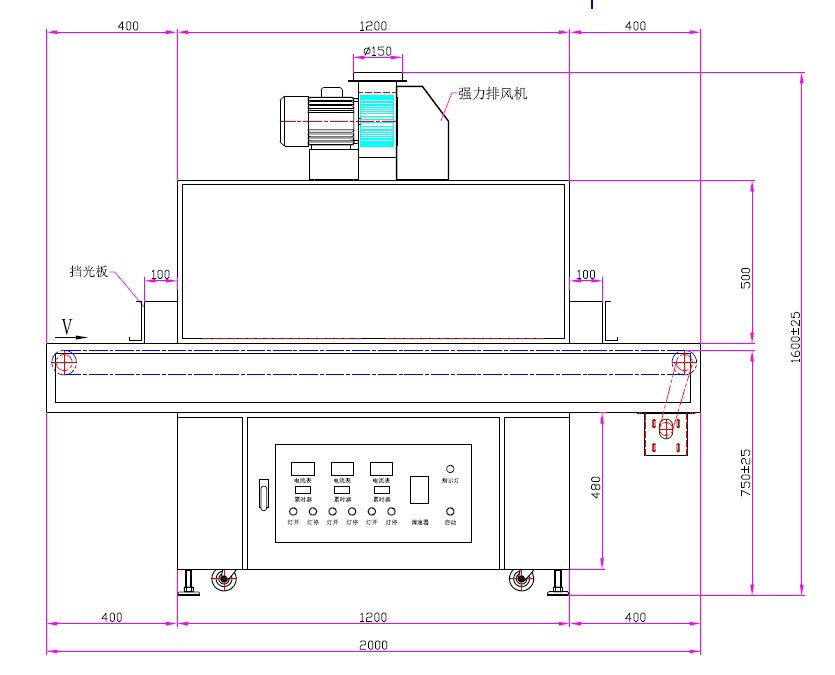1. UV燈功率:2.0kW*3支(UV汞燈燈)